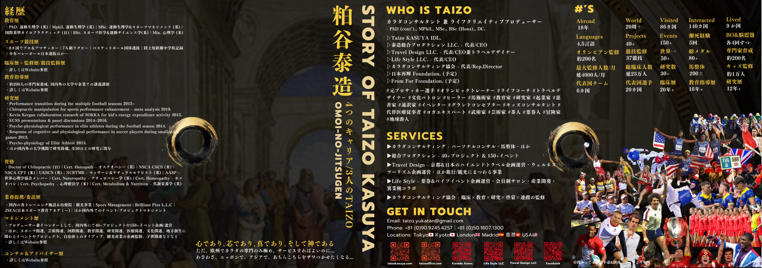 #ライフコーチ #オリンピックトレーナー #スポーツパフォーマンススペシャリスト #文化パトロン #起業家 #教育家 #グランドコンセプター #世界旅人 #トラベルデザイナー #イベンター #ヒーラー #治療家 #運動生理学士 #ファッションデザイナー #空間デザイナー #馬施術家 #研究家 #慈善家 #キッズコンサルタント #代替医療従事者 #芸術家 #葉巻人 #グレートルネサンス #日本3大Projects